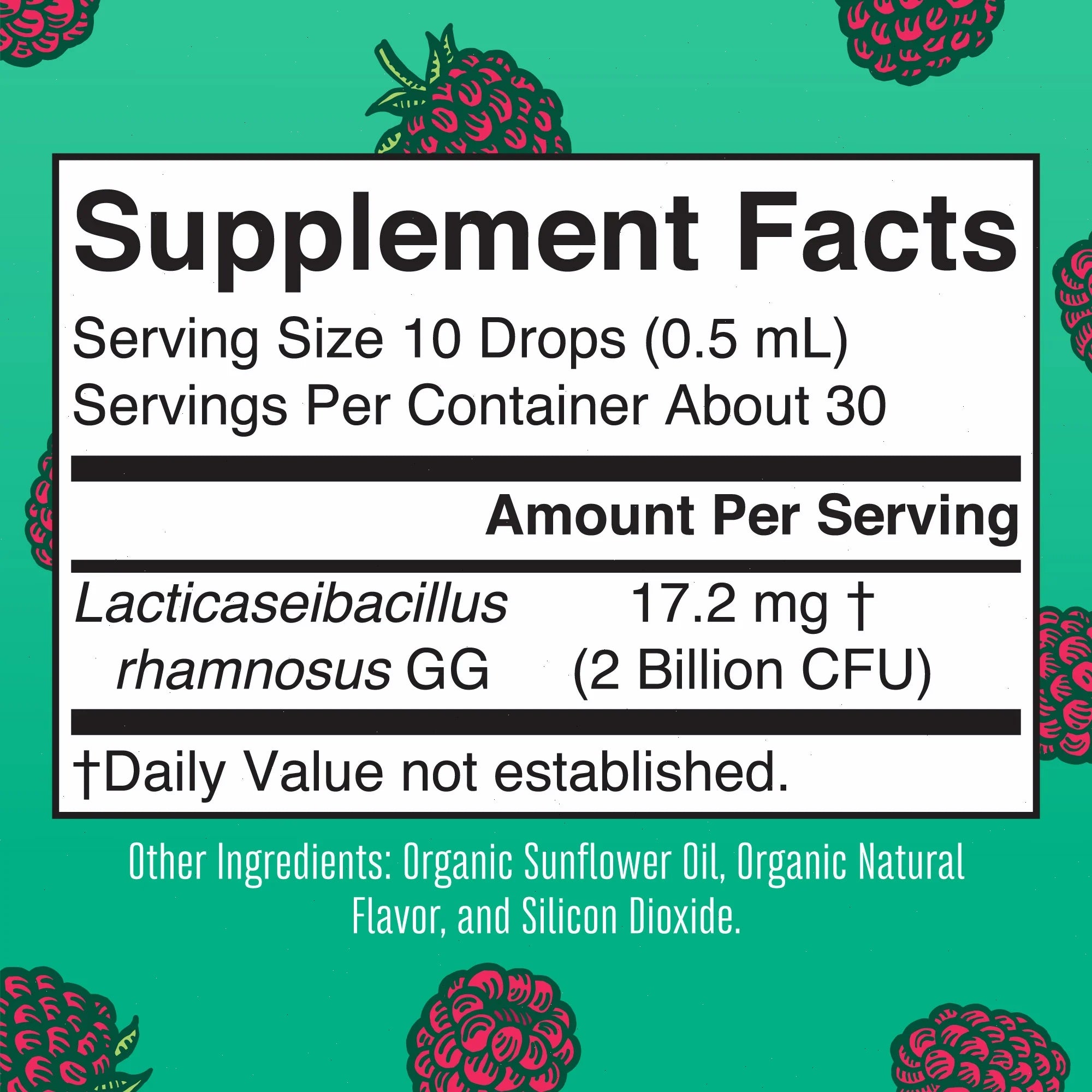 - With the clinically studied probiotic strain Lacticaseibacillus rhamnosus LGG, these easy-to-take, raspberry-flavored liquid drops were formulated to support kids.