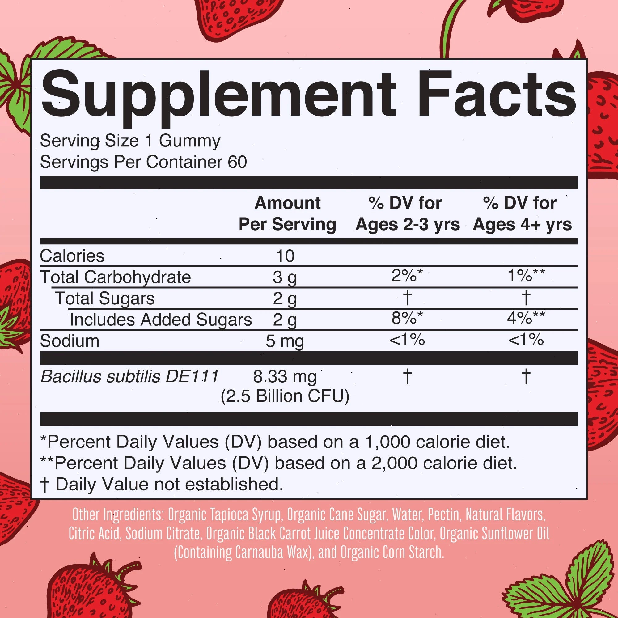 Gut & Digestive Support: Formulated with Bacillus subtilis DE111®, these probiotic gummies may help maintain normal gut comfort & function — wrapped in a chewable that tastes like a treat.